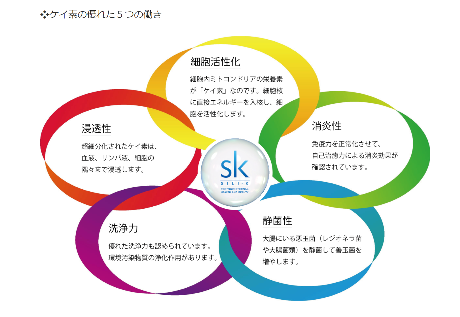 - 体のすべての細胞(約7兆個)の中にミトコンドリアが存在しているので、健康な体・健康な髪でいるためにも、質の良いミトコンドリアを増やして、カラダの中のエネルギー代謝を高めることが重要です ケイ素はミトコンドリアを構成している成分であり、ミトコンドリアの活動を活発にする効果があります。