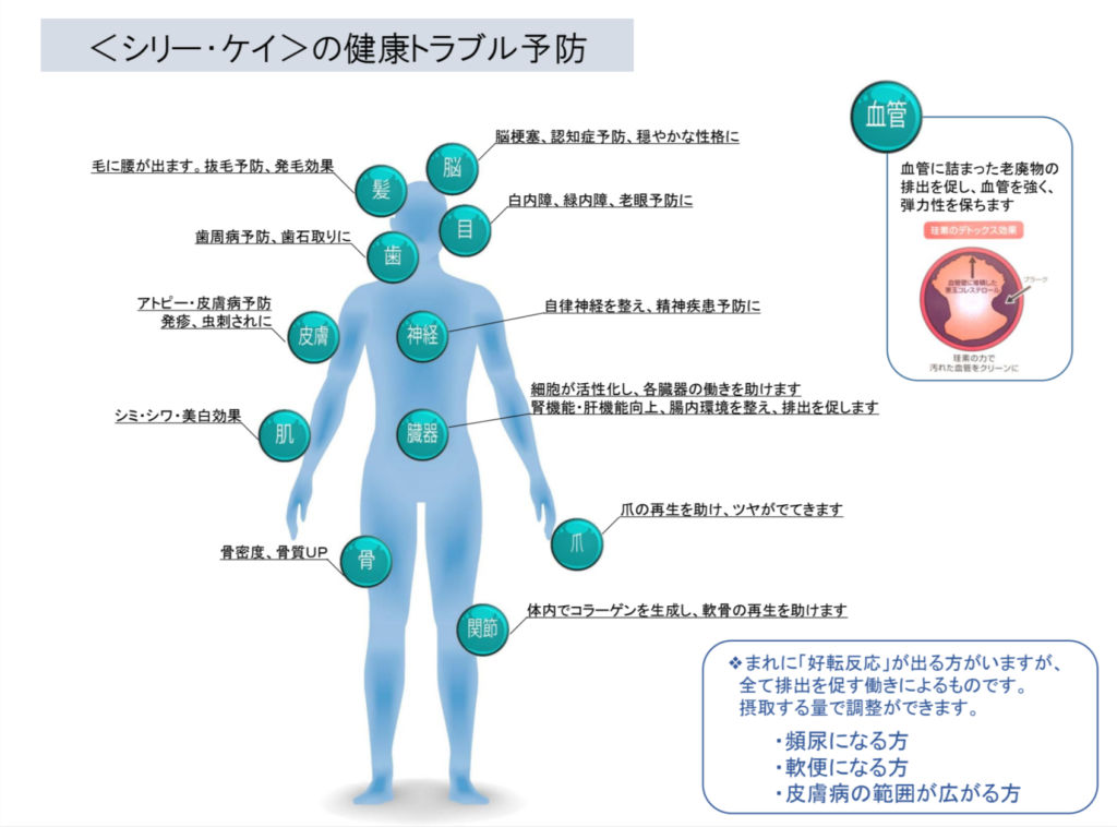 当店では飲み物やデトックスローション、シャンプー、頭皮用化粧水などに〝最も安全性の高いケイ素サプリメント<シリー・ケイ>″をプラスし、皮膚表面からもケイ素を身体に摂取していきます